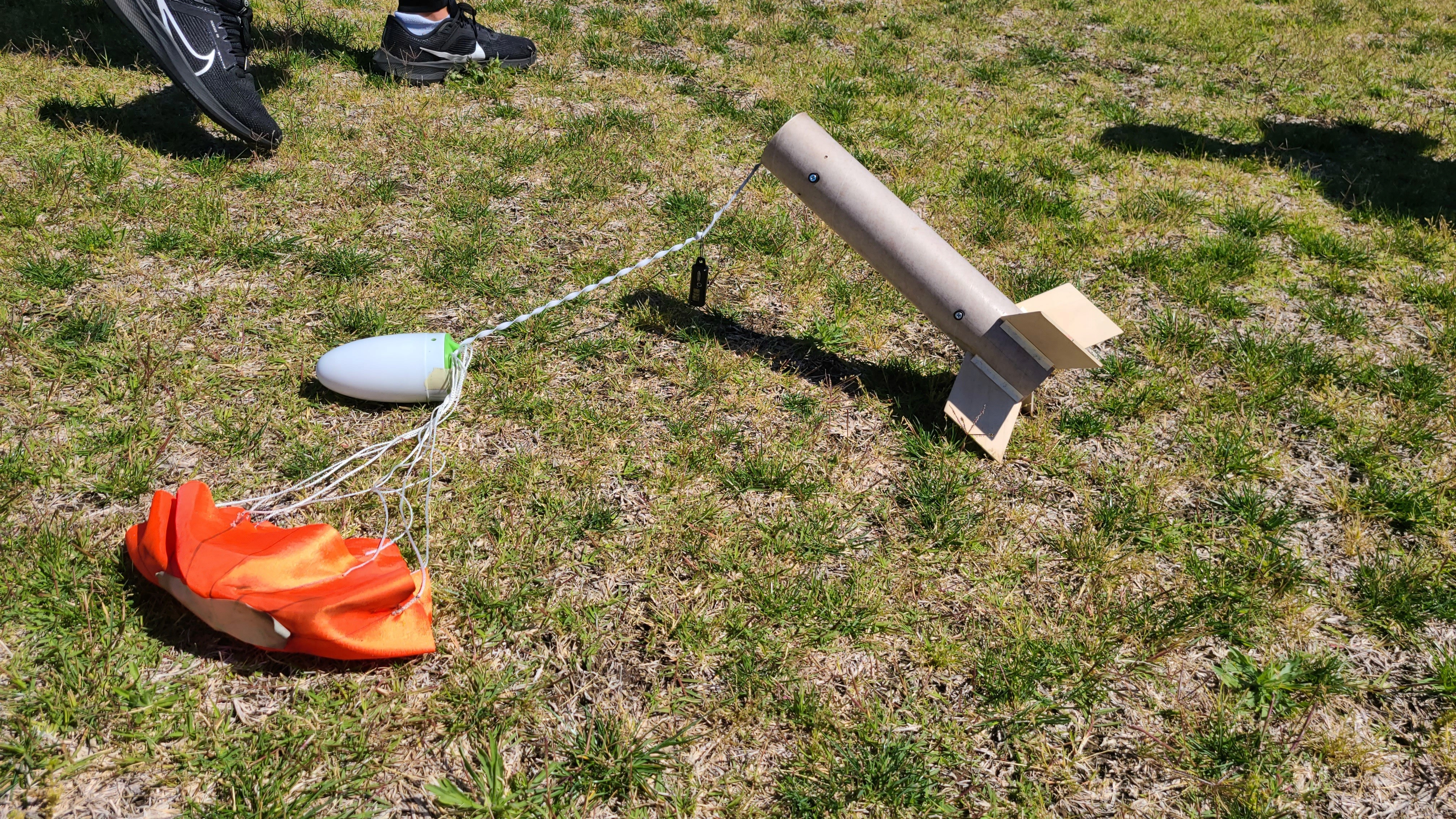 This first one, I built with my teammate as a group. The objective was to take an egg (payload), bring it to 400ft in the air, and land it safely.